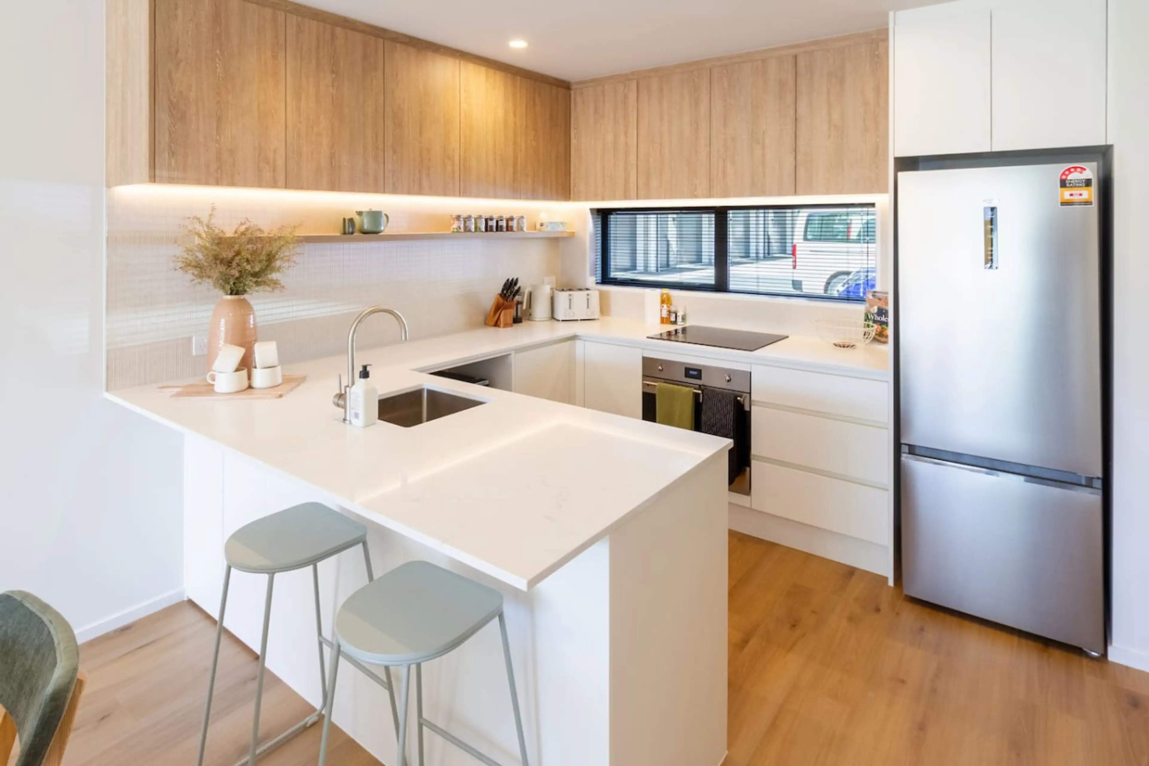 Find your calm in this beautifully designed two-storey townhouse on Fitzgerald Avenue. With modern architecture, warm neutral tones, and tranquil touches throughout, The Zen Retreat offers a peaceful escape right on the edge of the city centre. Enjoy a designer kitchen fully equipped for home cookin...