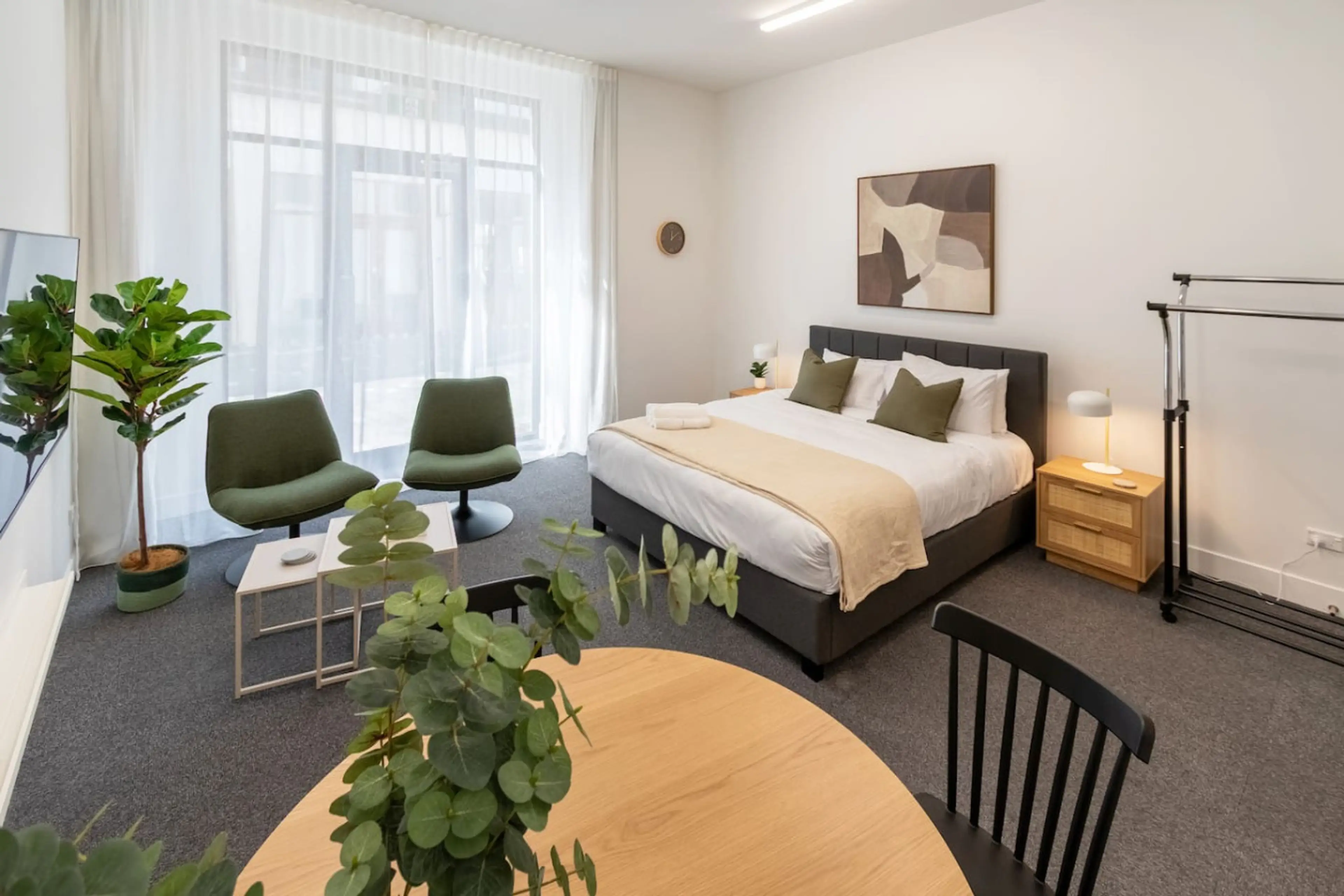 Spacious 2-bedroom apartment plus studio in Christchurch Central City, ideal for groups, families, or work trips. Sleeps up to 8 with 2 king beds, 2 king singles, and 1 sofa bed for extra 2 guests. Includes a full kitchen plus kitchenette, air conditioning, fast WiFi, and 2 full bathrooms. Street p...
