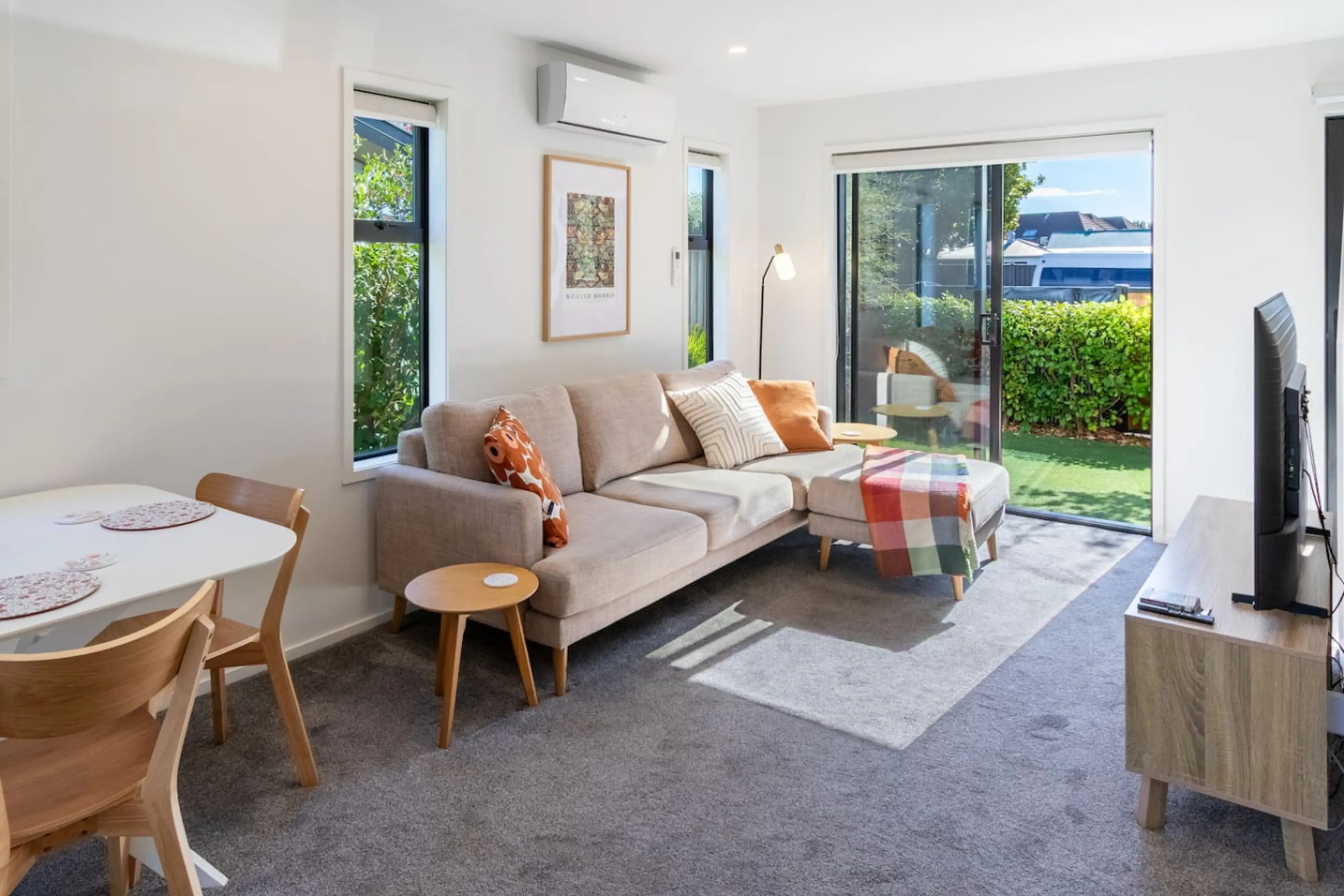 A well-designed townhouse in central Christchurch, ideal for couples or business travellers. Features a queen bed, full kitchen, fast WiFi, and a dedicated workspace. Enjoy a private outdoor yard and a warm, comfortable living space. Just a short walk to Te Pae Convention Centre, the tram route, O...